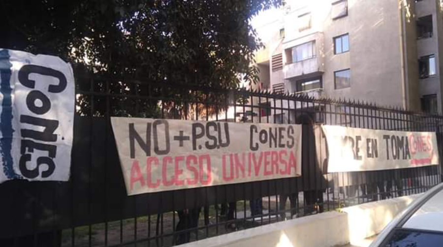 Esta mañana, cerca de las 9, un grupo de estudiantes oganizados en la Coordinadora Nacional de Estudiantes Secundarios (Cones) se tomó el edificio del Demre, en la comuna de Ñuñoa.