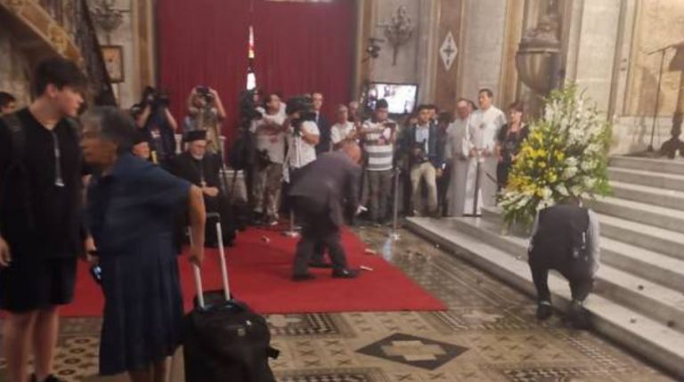Los manifestantes se acercaron al altar para comulgar durante la misa que se celebraba en la Catedral, cuando uno de ellos sacó restos de bombas lacrimógenas y los esparcieron en la catedral, a modo de protesta.