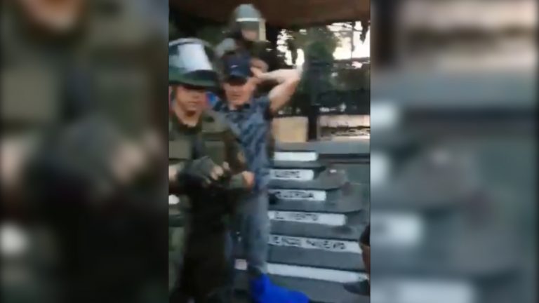 Mario Oyarzún, quien se desempeña como profesor de Historia del Liceo Carlos Condell de Talca, fue detenido este martes mientras escribía el poema “No te rindas” en los escalones del Odeón.