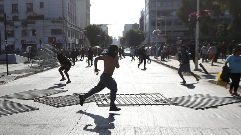 El intendente comentó que “en la Plaza Vergara hay unas 300 o 400 personas que están generando desórdenes, actos violentos, rompieron los ventanales del hotel O’Higgins, intentaron ingresar y no lo pudieron hacer, han intentado prender algunas barricadas, y lo que está haciendo Carabineros es dispersarlos para que no flanqueen el segundo anillo de seguridad“.