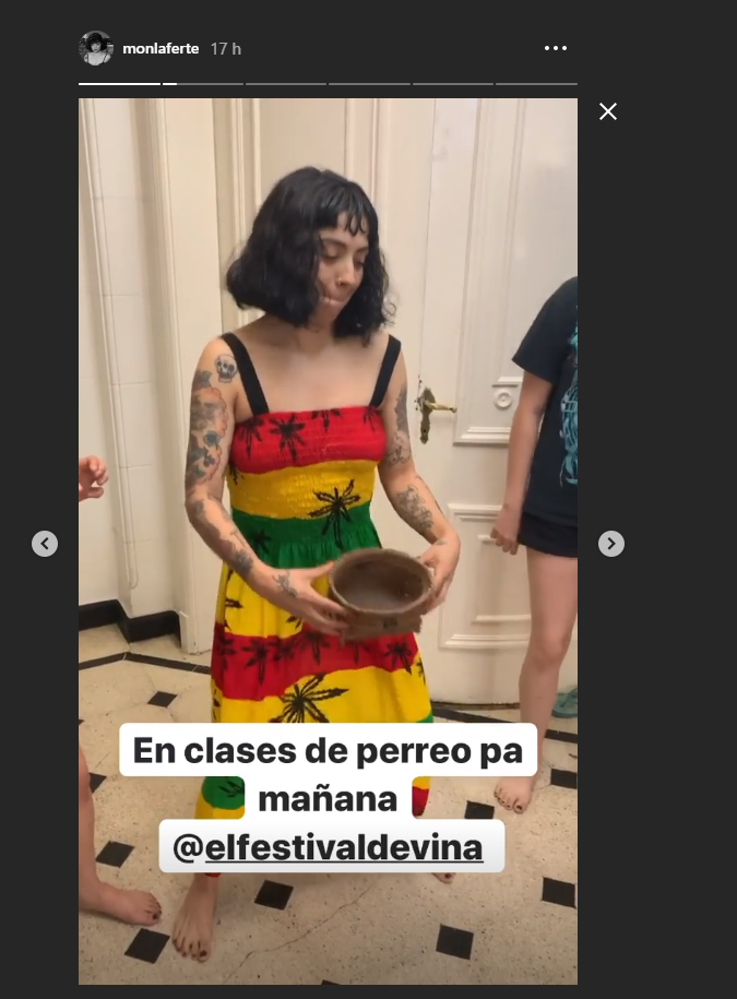 Además en la misma red social "Mon" mostró a sus seguidores, cómo se prepara para el show que dará este martes 24 de febrero en la Quinta Vergara. “En clases de perreo pa’ mañana”, escribió junto a un video donde se ve bailando.