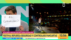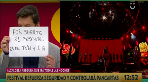 Noticias "Por suerte el Festival es de TVN y Canal 13": Julio César Rodríguez bromea con la restricción de pancartas en Viña Todo ocurrió en el matinal Contigo en la Mañana de Chilevisión. Fue allí que Julio César Rodríguez bromeó con las pancartas. Por Arak Herrera | 18 Feb, 2020. 14:38 hrs El reconocido conductor de Contigo en la Mañana, Julio César Rodríguez, bromeó con la restricción de pancartas que tendrá la edición del Festival de Viña este año. Con distintas hojas, el animador escribió algunos mensajes. "Por suerte el Festival es de TVN y Canal 13", decía uno de los escritos. Otro de sus papeles, decía: "Y el coronavirus?". Revisa el momento haciendo click aquí. Lee también: Julio César Rodríguez por Coronavirus: "Tampoco es tan mortal" En pantalla Pedropiedra revela la fecha de lanzamiento de "Aló!" su nuevo álbum Escucha el nuevo álbum de Tame Impala: "The Slow Rush" Sigue a Concierto.cl en Google Discover Recibe nuestros contenidos directamente en tu feed. Seguir en Google Contenido patrocinado