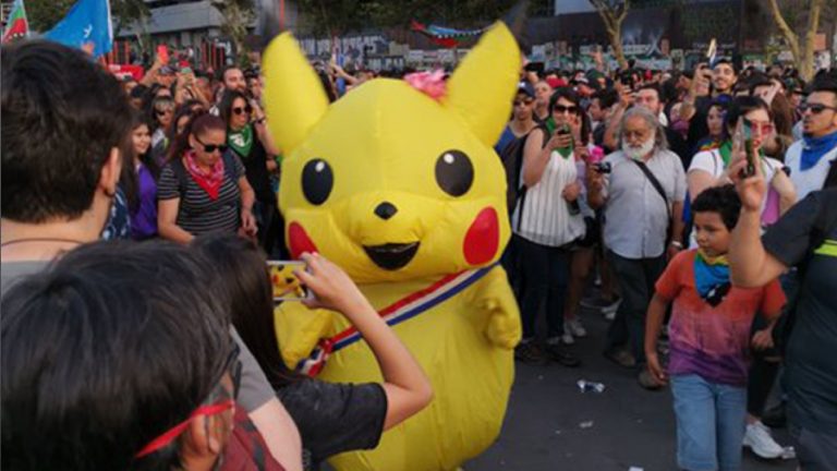 Fue ahí cuando Giovanna Grandón, la mujer dentro del traje de “Tía Pikachu“, denunció una agresión por parte de efectivos policiales: “al momento de venir de vuelta de La Moneda llegamos hasta un punto en donde Carabineros nos tiró gas pimienta, así que nos devolvimos a Plaza de la Dignidad, porque en ese lugar más menos yo tenía estacionado el vehículo”, relató a CHV.