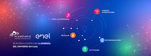 Agenda Concierto "La energía del universo en tu casa" en el Planetario Chile Además, está disponible la sección Cony, la astrónoma, sobre fenómenos espaciales en Planetario Chile. Por Arak Herrera | 28 Abr, 2020. 18:22 hrs La energía del universo en tu casa se llama la propuesta del Planetario para acompañarte en estos días de encierro. Encontrarás material audiovisual en formato Full HD, para disfrutar en tus dispositivos móviles. Además, está disponible la sección Cony, la astrónoma, sobre fenómenos espaciales, todo para llevar la experiencia de la ciencia a tu casa. Visita PlanetarioChile.cl. Agenda Concierto Gepe, Pedropiedra y más en el Festival Panorama Neutral "El hombre en el castillo" y "Battlestar Galactica" en Prime Video Sigue a Concierto.cl en Google Discover Recibe nuestros contenidos directamente en tu feed. Seguir en Google Contenido patrocinado