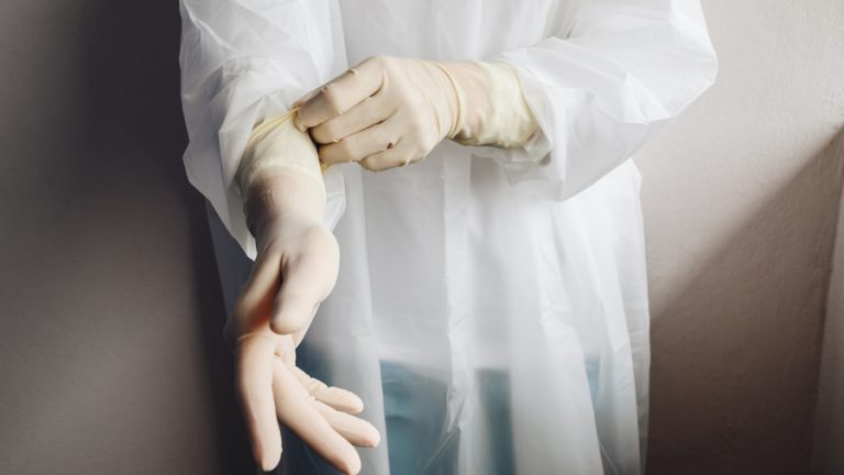 Una muestra del extenuante trabajo que han debido realizar es la fotografía de la mano de un médico que estuvo 10 horas con guantes protectores.