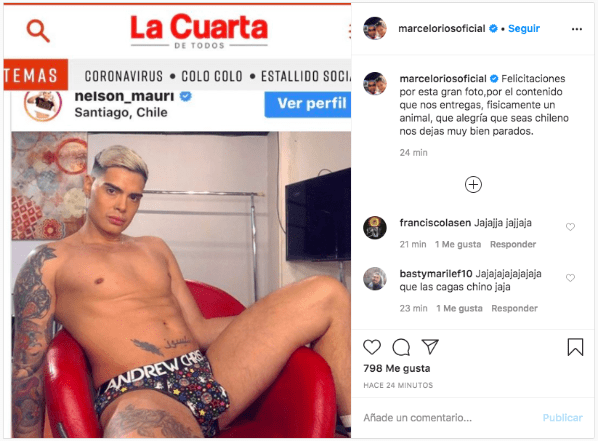 Los internáutas quedaron perplejos ante la publicación. Por su parte, Ríos borró la imagen del bailarín de su Instagram. Luego de la polémica que causó su peculiar publicación. Pero la misma quedó inmortalizada en múltiples capturas de pantalla que los seguidores compartieron y comentaron.