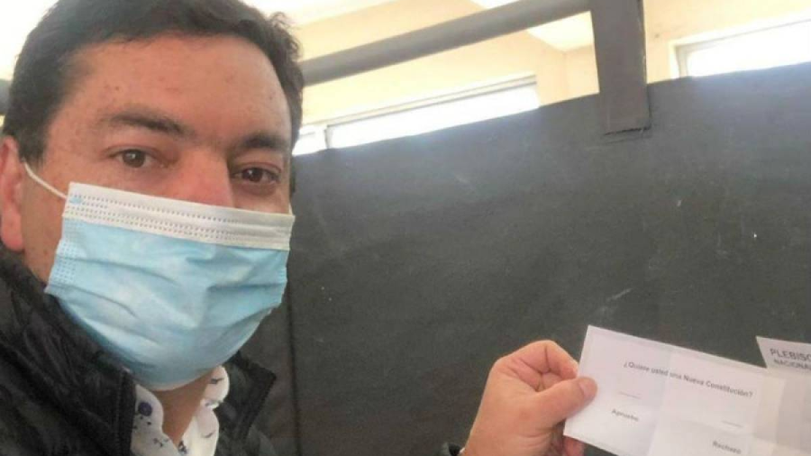 El diputado Juan Manuel Fuenzalida, de la Unión Demócrata Independiente (UDI) por la región de Coquimbo, tomo una fotografía al interior de la cabina de votación junto a su sufragio.