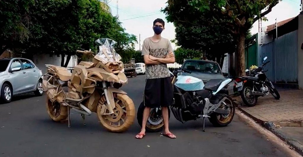 Henry Goncalves, joven brasileño de 19 años, está siendo furor en redes sociales por su habilidad de crear réplicas, a tamaño real, sus modelos favoritos de motocicletas y solo utilizando cartón.