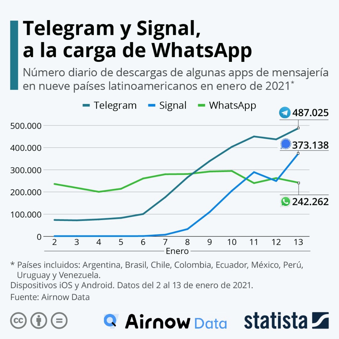 Es por esto, que aplicaciones como Telegram y Signal ya superan a WhatsApp en el número de descargas diarias en gran parte de América Latina.