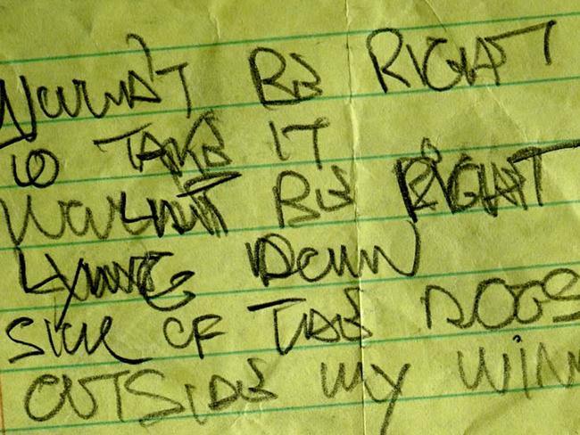 Se trata de la lírica de una canción que fue escrita la noche en que se quitó la vida. Garabateadas en un bloc de notas amarillo, encontrado en la habitación 525 del Ritz-Carlton de Sydney, las palabras hacen alusión a las presiones que sentía y su mala relación con los paparazzi. Uno de sus amigos más cercanos, Nick Egan la describió como “casi una nota de suicidio”.