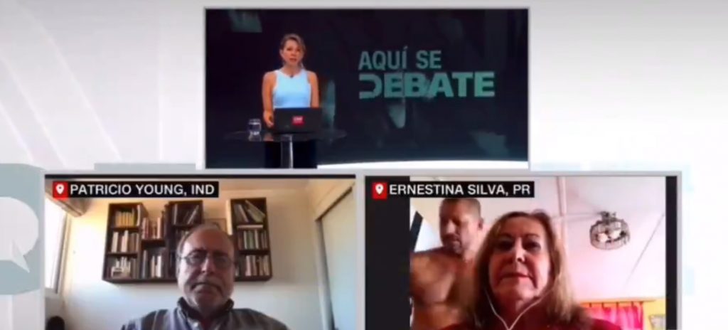Teniendo como invitados a los candidatos a Ernestina Silva del Partido Radical y al independiente Patricio Young, fue por la pantalla de Silva que se vio al sujeto pasando detrás de ella.