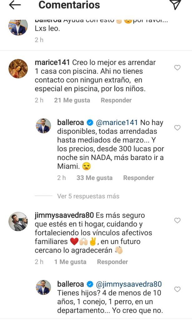 "Es más seguro que estés en tu hogar, cuidando y fortaleciendo los vínculos afectivos familias. En un futuro cercano lo agradecerán", fue uno de los comentarios que recibió Ballero.