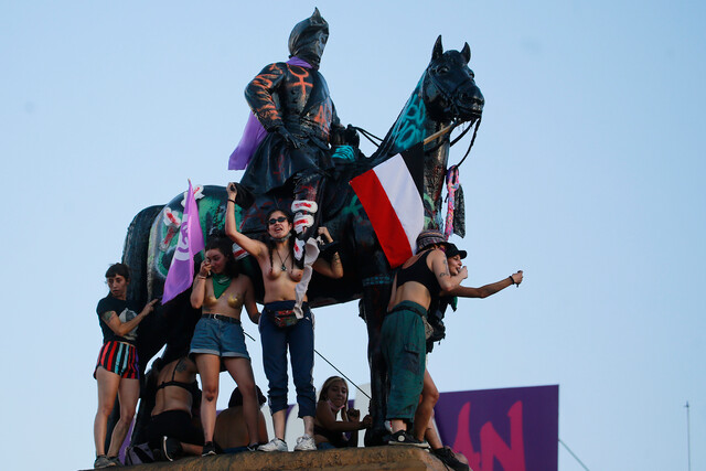El viernes, en medio de protestas habituales en el mismo sector de Santiago, un grupo de individuos intentó quemar la estatua al prenderle fuego.