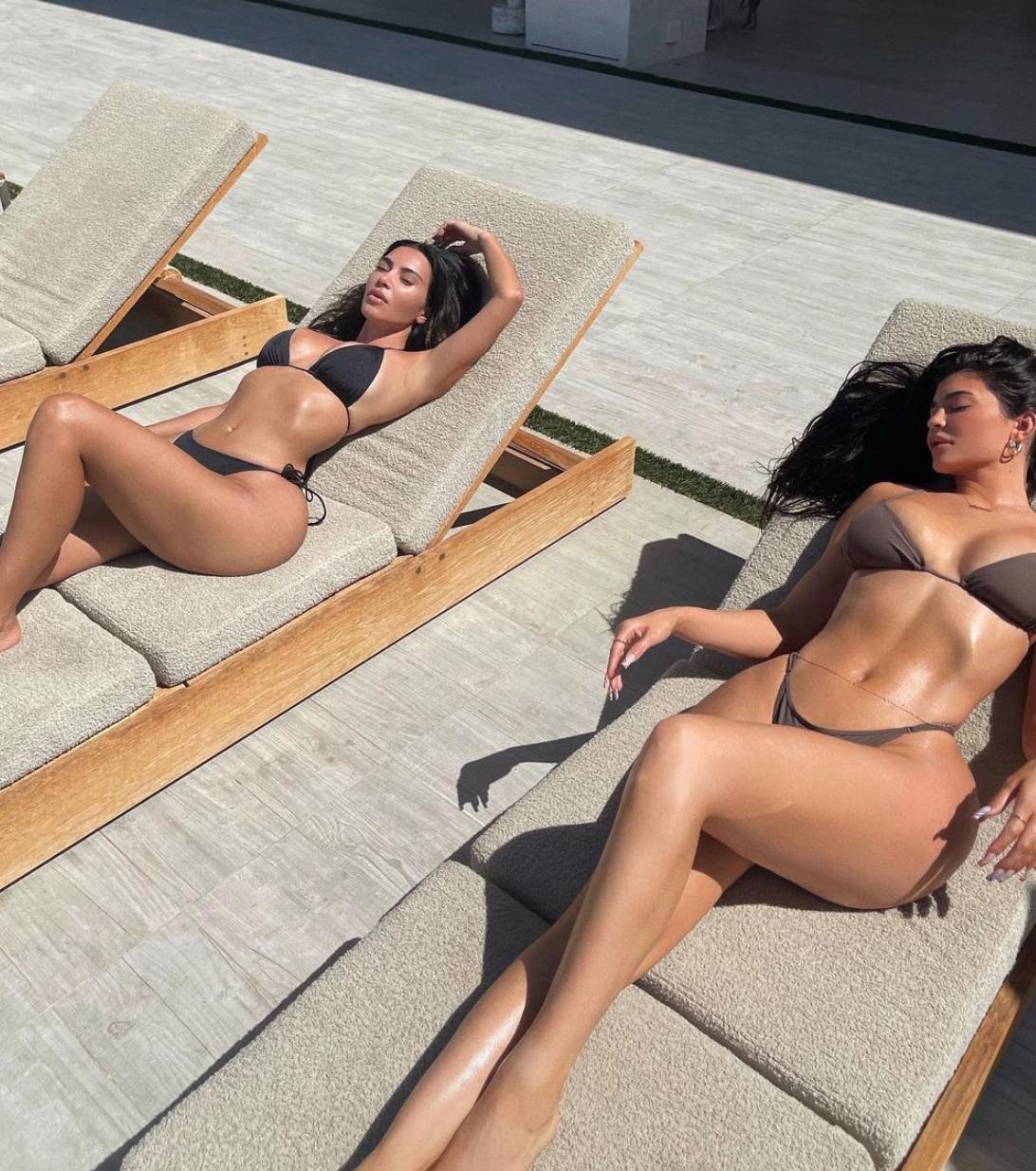 Se le ve disfrutando un día de piscina con su célebre hermana, Kim Kardashian. Ambas lucen impecables. Y hacen gala de su característica figura voluptuosa y bien definida.