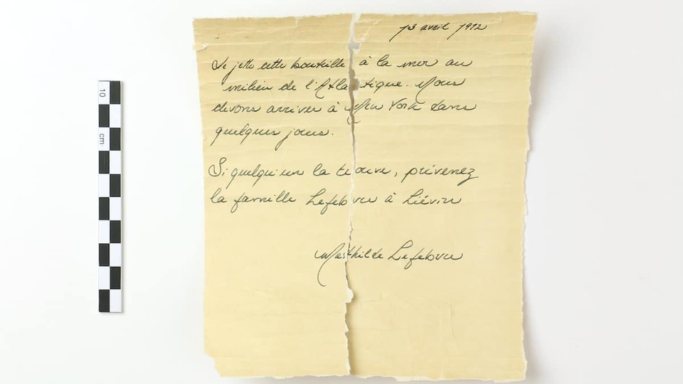 Según han mencionado los expertos, esta corresponde a una niña de 13 años llamada Mathilde Lefebvre, persona que firma la carta. ''Voy a tirar esta botella al mar. Tenemos que llegar a Nueva York en unos días. Si alguien la encuentra, póngase en contacto con la familia Lefebvre en Liévin'', se puede leer en la misiva.