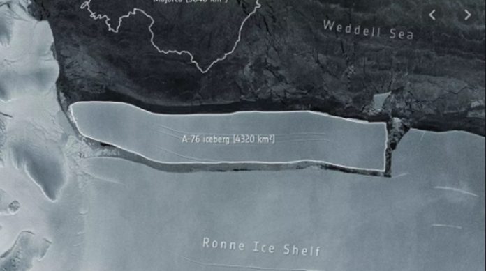 Las imágenes del inmenso bloque de hielo A-76 las tomó el satélite Sentinel-1. Esto, en el marco del programa europeo de observación de la Tierra Copernicus.