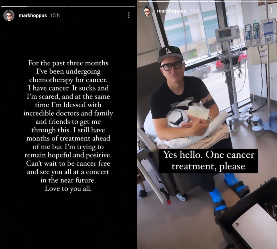 "Los últimos tres meses he estado asistiendo a quimioterapia por cáncer", comenzó señalando Mark Hoppus en el mensaje replicado en sus historias de Instagram.