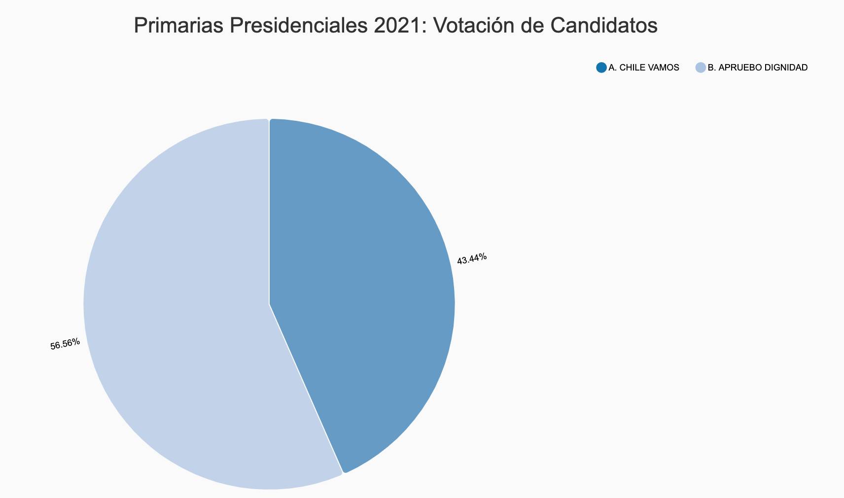 Por el pacto Chile Vamos, Sebastián Sichel ganó las primarias oficialistas. Mientras que por el pacto Apruebo Dignidad, Gabriel Boric se alzó con la victoria de la oposición por encima de Daniuel Jadue.