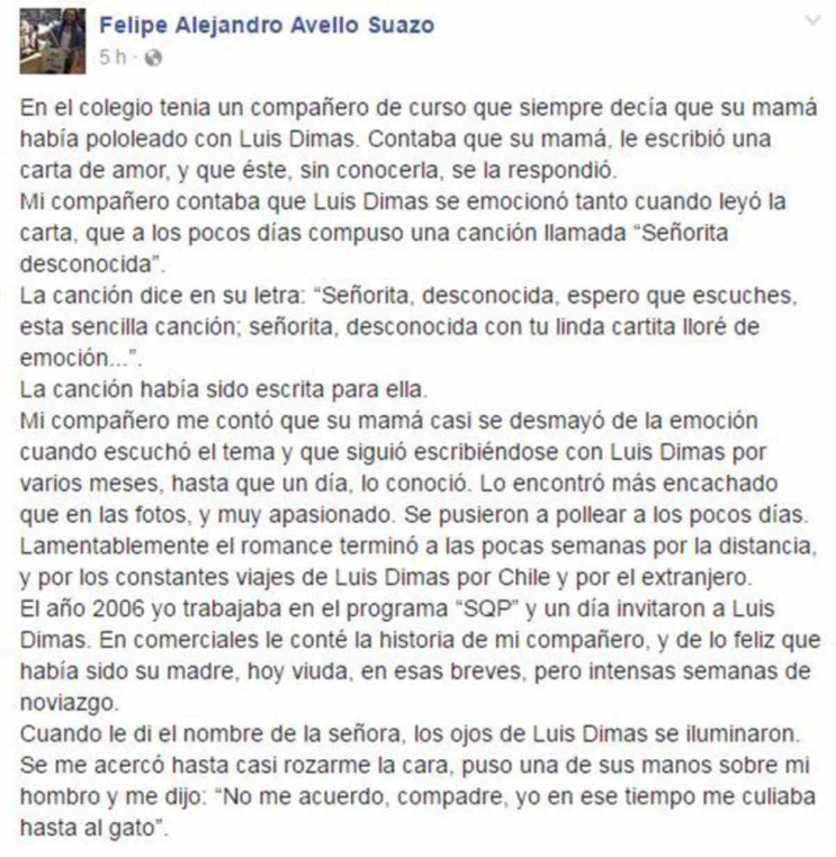 Fue tanto el impacto en su minuto, que Felipe Avello desempolvó una "anécdota" en ese tiempo mediante su cuenta de Facebook. El hilo conductor es la canción "señorita desconocida" del cantante nacional.