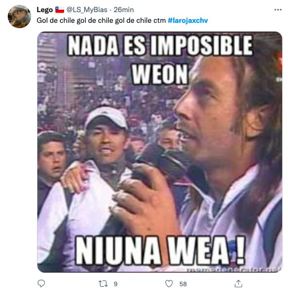 El tanto le dio nuevos bríos a Chile, que aumentaría en la cuenta a los 85 minutos mediante el "Niño Maravilla". Se sacó varias marcas, entró al área y metió un derechazo cruzado para el tercero.