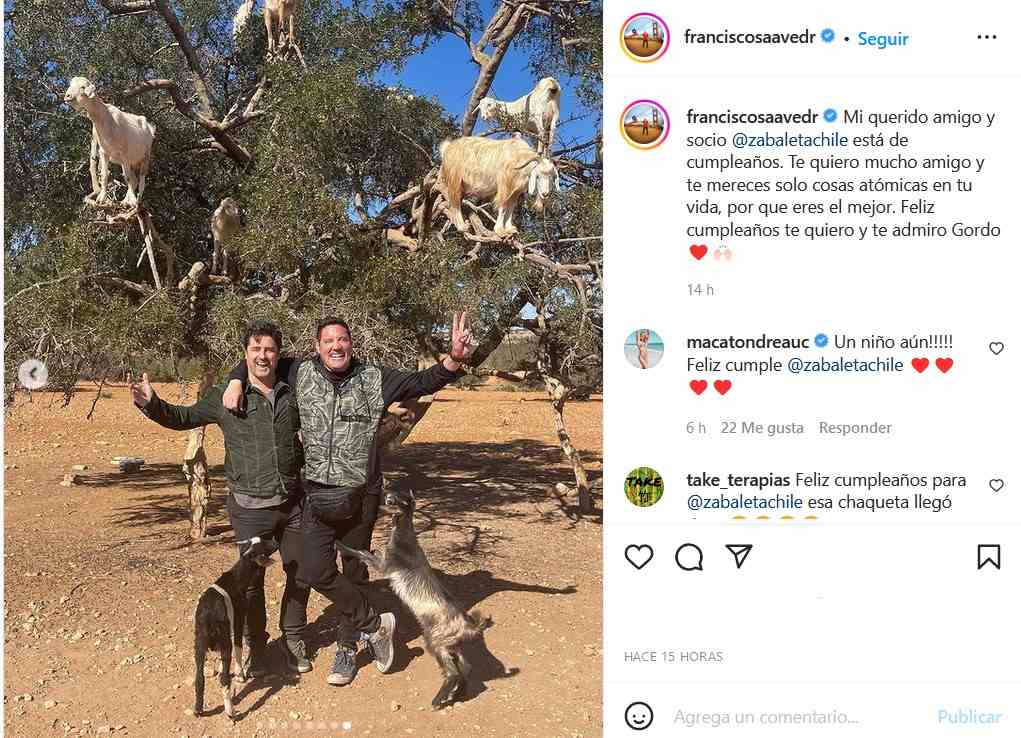 "Mi querido amigo y socio @zabaletachile está de cumpleaños. Te quiero mucho amigo y te mereces solo cosas atómicas en tu vida, por que eres el mejor. Feliz cumpleaños te quiero y te admiro Gordo", dice el mensaje de Saavedra.