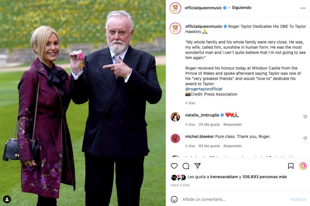 Otro que se sumó a homenajear a Hawkins es el histórico baterista de Queen Roger Taylor, quien le dedicó la Orden del Imperio Británico que le fue concedida el pasado 30 de marzo.