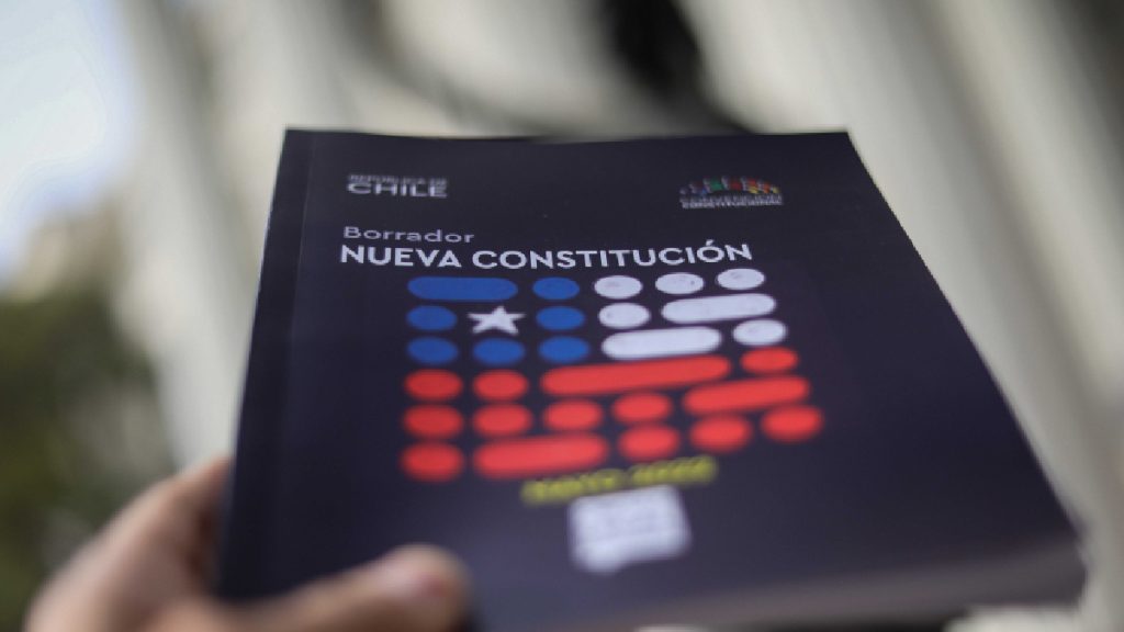 John Smok, secretario de la Convención Constitucional, será quien anuncie que no quedan votaciones pendientes. Luego entregará tres ejemplares del texto de propuesta constitucional para que sean firmados por Quinteros y Domínguez. El tercer libro será para que el Mandatario lo firme.