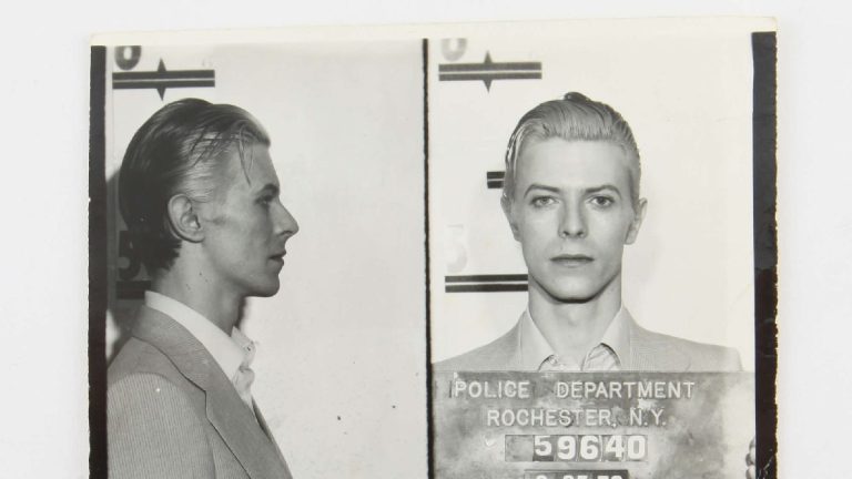 La foto policial, que se puede ver a continuación, se tomó en Rochester, Nueva York, y se estima que tiene un valor de hasta 1,500 euros. Según se consigna, el "esposo del primo del vendedor [de la fotografía] era un caballero llamado Scott" que "fue el oficial que tomó las huellas dactilares y fotografió a David Bowie".