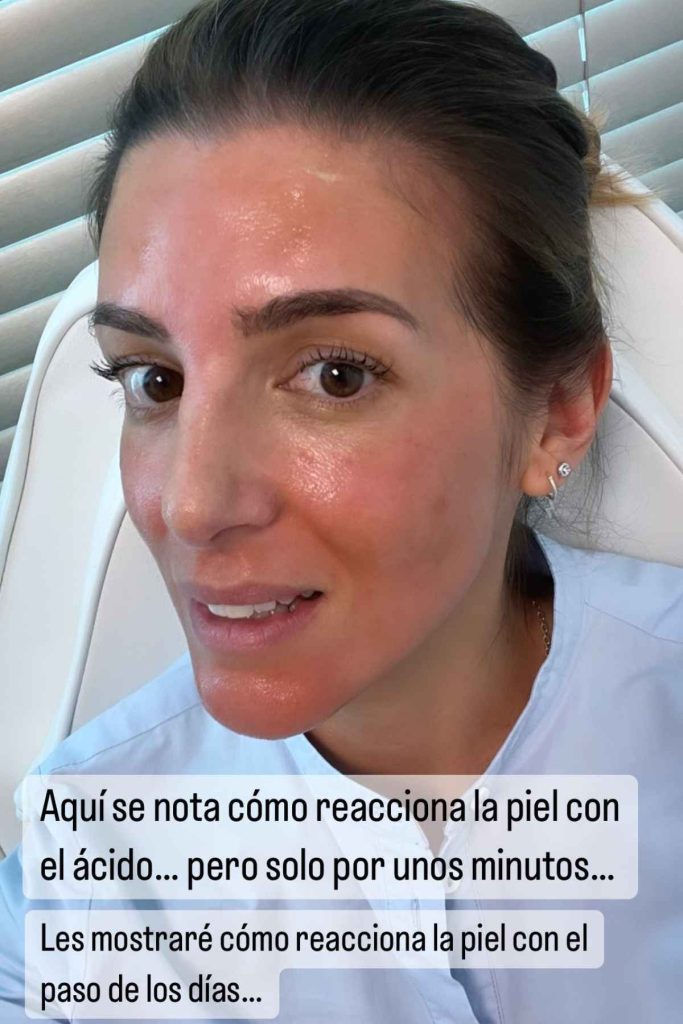 Finalmente la conductora subió unas fotos para lucir cómo reaccionaba su piel al peeling químico. En ellas se ve su cara bastante roja por el líquido aplicado. "Aproximadamente 45 minutos con el producto en el rostro. Sientes un ardor muy controlable… Aquí se nota cómo reacciona la piel con el ácido… pero solo por unos minutos… Les mostraré cómo reacciona la piel con el paso de los días", finalizó.