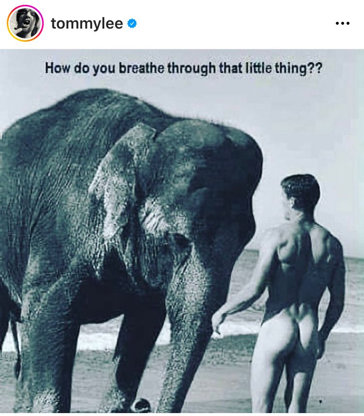 Y es que la mayoría de las personas que ven fotos de Tommy Lee primero se fijan en todos los tatuajes que tiene el baterista. Sin embargo, el ojo puede desviarse en situaciones como esta, ¿verdad? El ex de Pamela Anderson subtituló la foto, "Ooooopppsss". Algo bastante irónico para lo intencional que fue la fotografía.