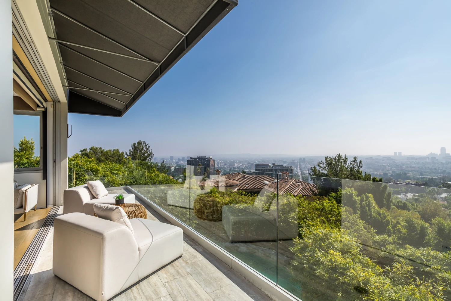 Ubicada detrás de puertas privadas sobre Sunset Strip, esta casa moderna se jacta de sus espectaculares vistas panorámicas desde el centro al océano. El nivel principal cuenta con un concepto abierto con altos techos y pisos de madera en toda el área. El sector del living cuenta con chimenea y paredes de vidrio que desaparecen para dar lugar a una terraza herbosa con vistas amplias. La cocina gourmet viene completa con cabinas blancas, cubiertas de piedra gris, una gran isla central y electrodomésticos de última generación.