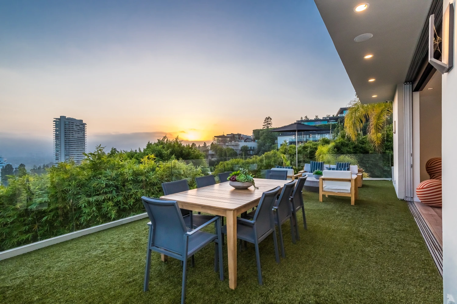 El patio es un oasis privado, con una espectacular piscina y tinaja rodeadas de verde y una impresionante terraza con un área para sentarse, bar y baño, perfecto para entretenimiento. Otras comodidades incluyen un home theater, gimnasio, oficina y una gran terraza privada en el segundo piso con mucho espacio y vista directa al centro de LA.