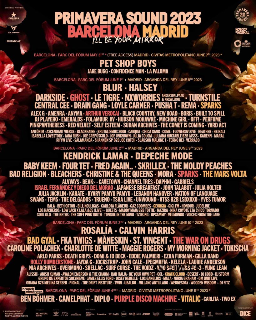 Es por eso mismo que el cartel tienen entre sus grandes nombres a: Kendrick Lamar, Blur, ROSALÍA, Halsey, FKA twigs, Skrillex, St. Vincent, The Moldy Peaches, Calvin Harris, Le Tigre, Depeche Mode, Pet Shot Boys y muchos más.