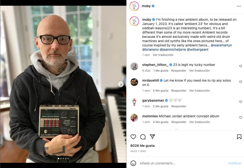 Con una publicación en Instagram que muestra a Moby sosteniendo su siempre confiable caja de ritmos Electro Harmonix, el compositor dio a conocer la noticia sobre el álbum que continuará All Visible Objects de 2020.