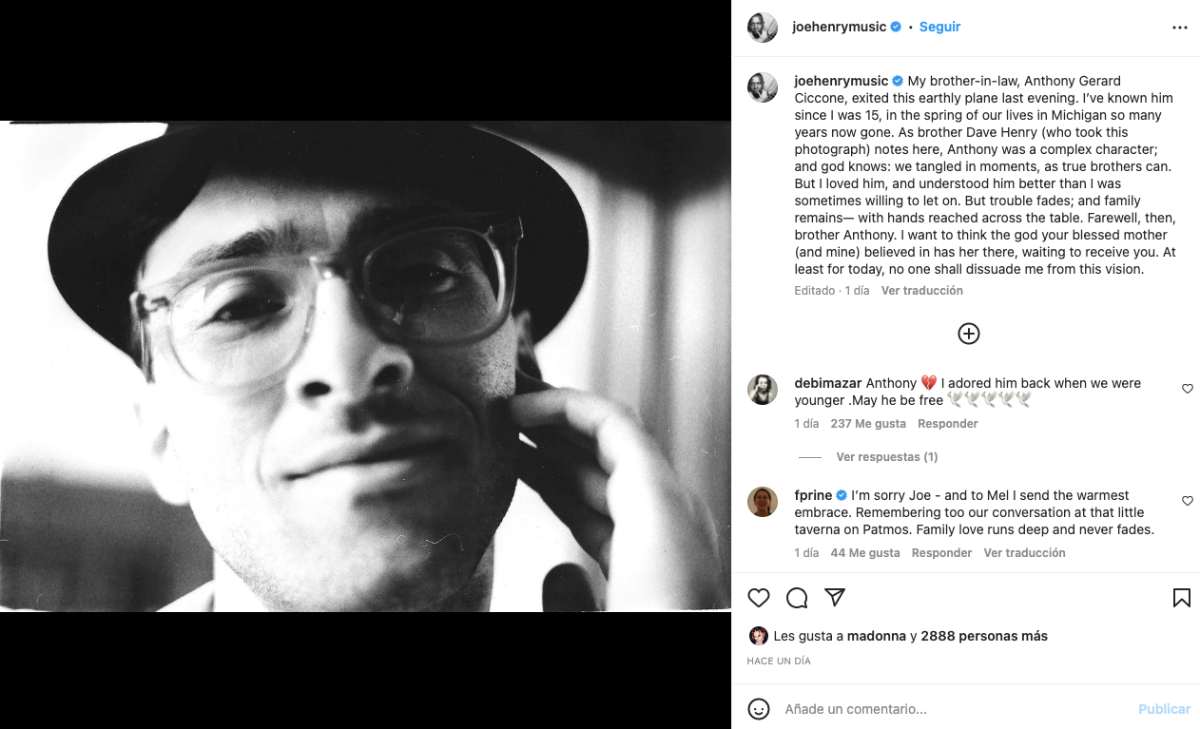 "Mi cuñado salió del plano terrenal esta noche. Lo conozco desde los 15 años. Anthony era una persona compleja y Dios sabe que tuvimos nuestras desavenencias. Pero lo amaba como a un hermano. Los problemas desaparecen y la familia permanece. Adiós, hermano. Quiero pensar que Dios te está esperando allí arriba para recibirte". Así escribió Henry en su perfil de Instagram, a la que Madonna le dio un Me gusta.