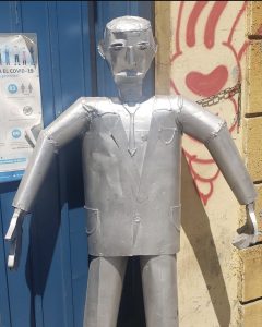 A través de Instagram el británico subió una imagen de una escultura metálica con traje. En el que en su publicación escribió "Man of Steel" (hombre de acero)". Algunos fanáticos hicieron notar que el look de la escultura era similar al que Byrne habría usado para el video de "Stop Making Sense".