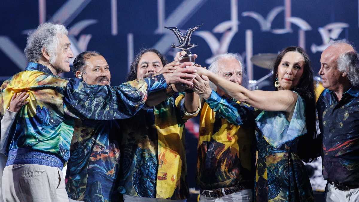 La legendaria banda Los Jaivas se presentaron este martes 21 de febrero en el Festival de Viña 2023. En lo que significó el gran regreso al escenario de la Quinta Vergara de uno de los mayores emblemas de la música chilena. Es su octava presentación en la cita viñamarina y el público estuvo eufórico como siempre, con éxitos como Tarka y Ocarina, Mira niñita y La conquistada.