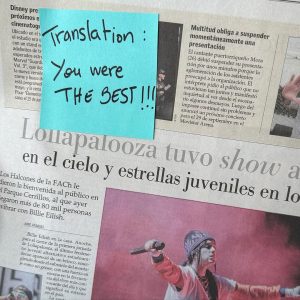 También entre las fotos que más sorprendió es la de del diario chileno El Mercurio con una noticia sobre su presentación. Con un papel pegado que dice: "Traducción: ¡Fuiste la mejor!". Para que la artista entendiera que era lo que decía el medio chileno sobre su gran espectáculo.