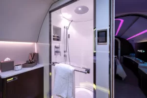 Parte del equipamiento de este jet son los 16 asientos, una mesa de comedor para ocho personas, tres televisores de 55 pulgadas, una suite con cama king size y baño con ducha. Además, los visitantes también pueden aprovechar una red Wi-Fi de alta velocidad mientras están a bordo.
