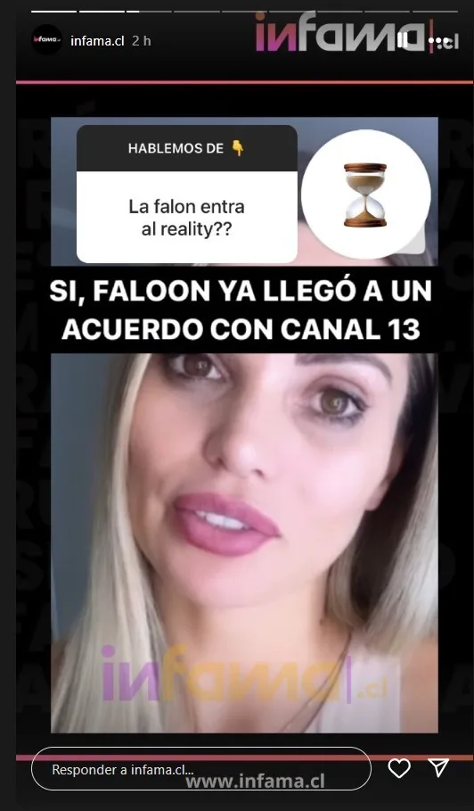 "Sí, Faloon ya llegó a un acuerdo con Canal 13", confirmaron desde Infama. Además, desde el portal también señalaron que “la motivación de Faloon para entra al reality es el dinero”.