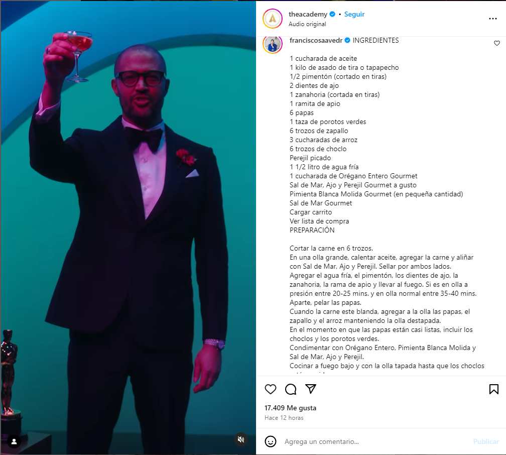 En las últimas publicaciones de la cuenta de Instagram oficial de la Academia, se puede ver que la mayoría de los comentarios son recetas de comida chilena. Listas de cómo hacer completos, chupe de mariscos, porotos granados, entre otros, abundan en los posts de quienes deciden a qué producción entregar los premios.