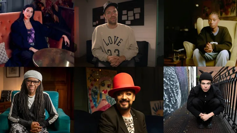 Las nuevas imágenes reveladas hoy muestran a Dua Lipa compartiendo pantalla con leyendas de la música como Chris Martin (Coldplay), Little Simz, Nile Rodgers, Boy George y Yungblud.