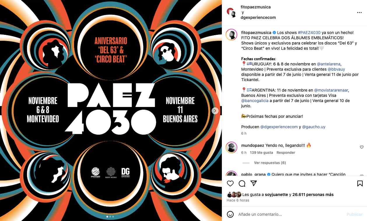 El legendario músico rosarino Fito Páez sorprendió a sus seguidores con una gran noticia: después del éxito de su gira celebrando los 30 años de El amor después del amor, ahora se embarca en una nueva serie de conciertos para conmemorar dos de sus álbumes más icónicos: Del 63 y Circo Beat.