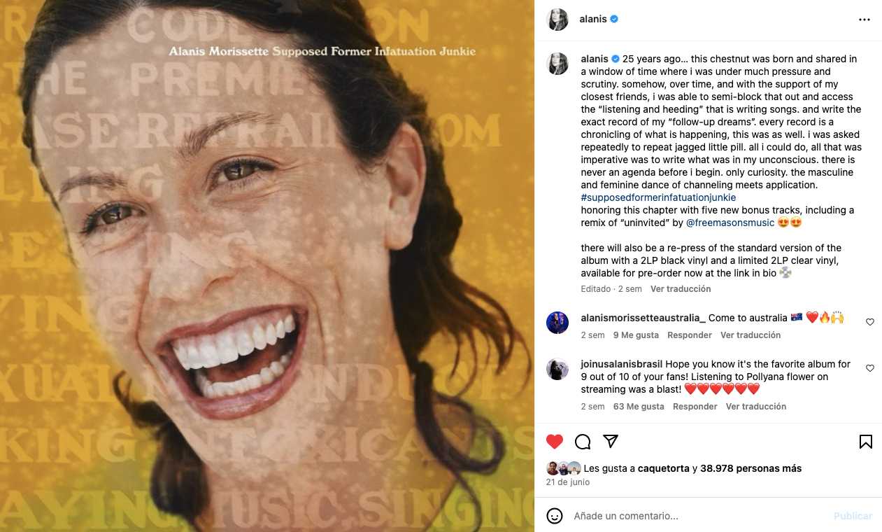 Al hacer el anuncio en sus redes sociales, Alanis reflexionó sobre su carrera.