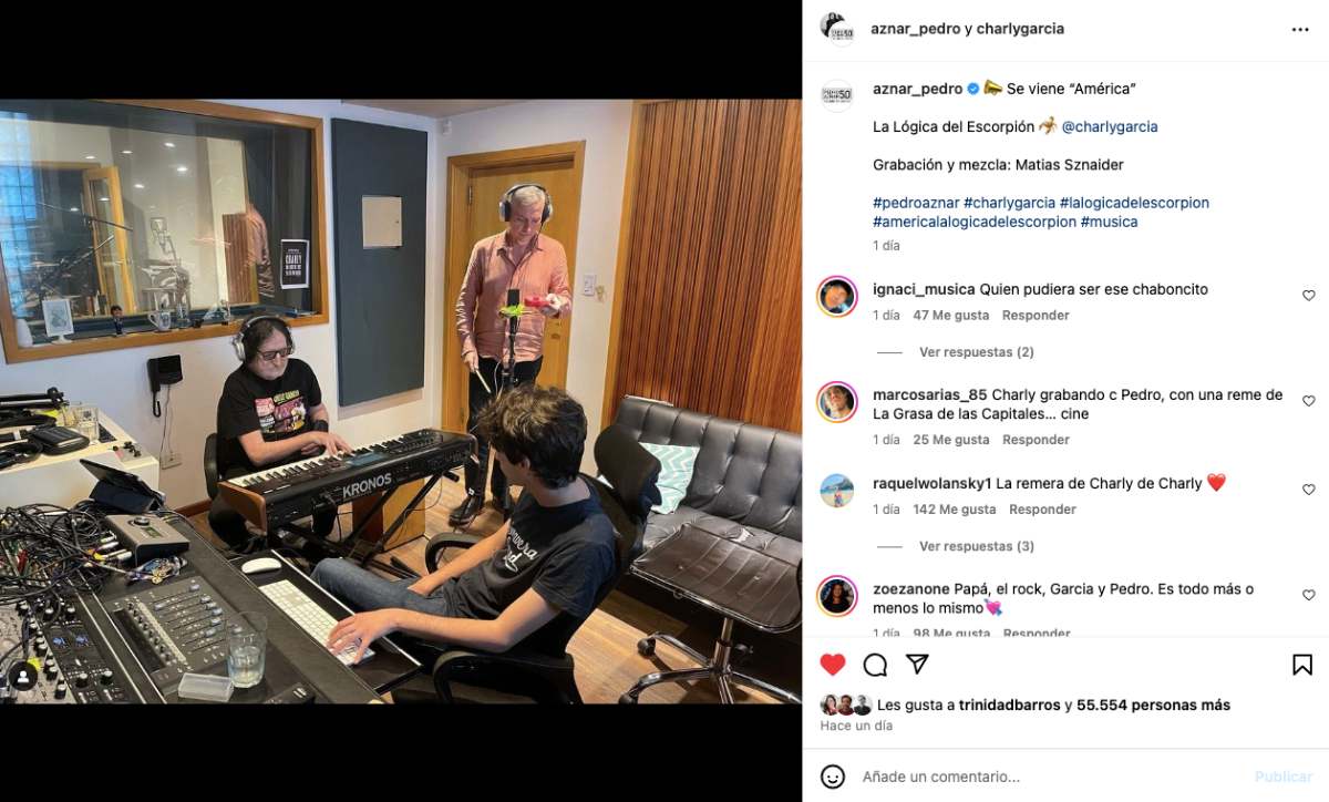 En sus redes sociales, el bajista compartió una foto del estudio donde ambos músicos se reúnen para grabar la canción América, uno de los temas destacados de La lógica del escorpión.