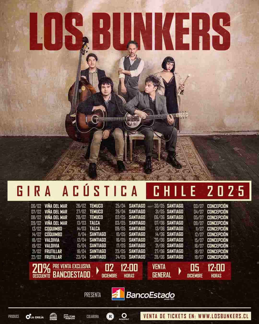 Con esta propuesta acústica, Los Bunkers prometen un recorrido musical íntimo que acercará su música a los fanáticos de todo Chile.