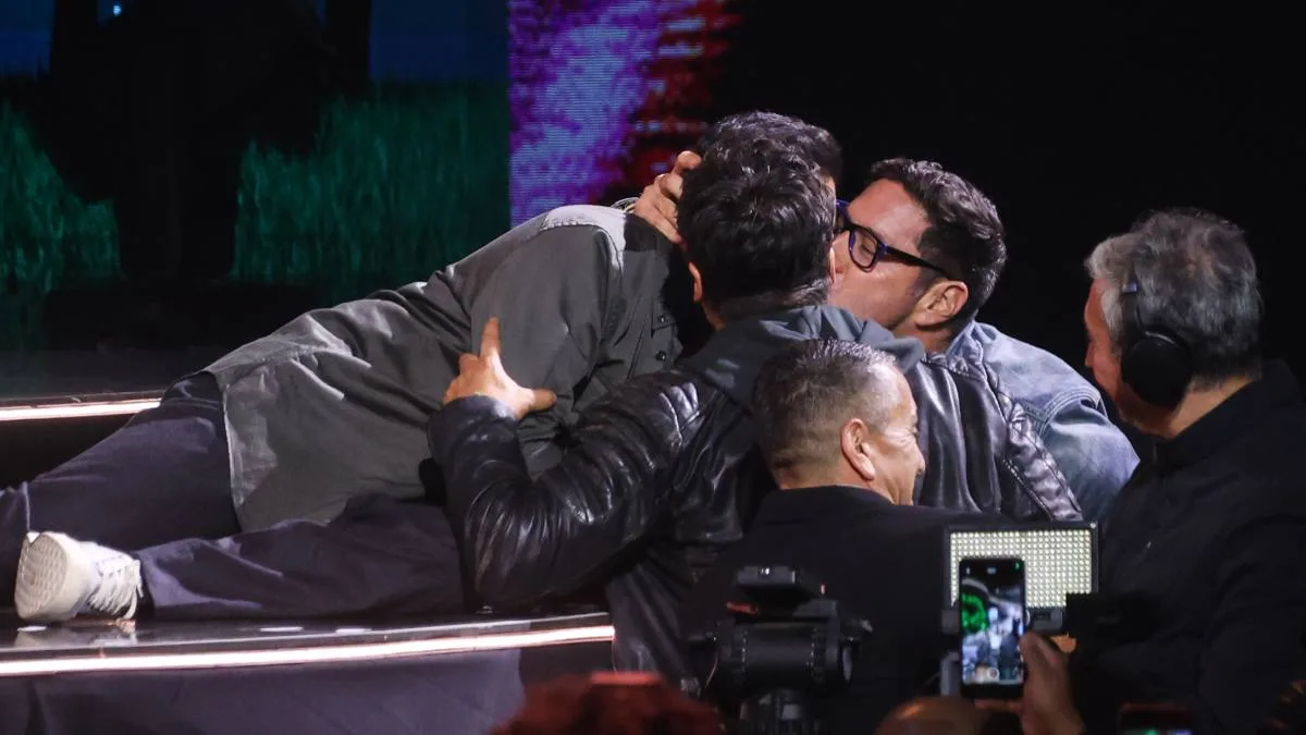 En un momento espontáneo, y a petición del público, Ruminot protagonizó un "beso de tres" con los animadores, sellando una noche triunfal.