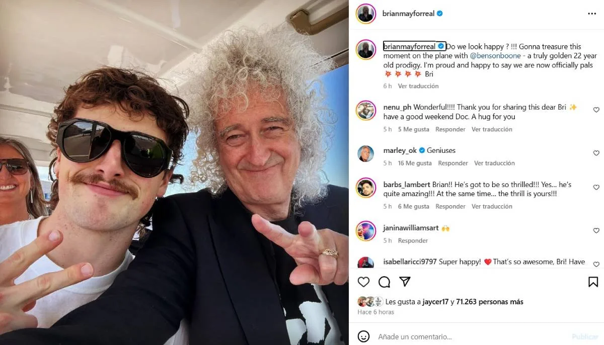 Más tarde escribió: "¿Nos vemos felices? Voy a atesorar este momento con @bensonboone. Un prodigio de 22 años. Estoy orgulloso y feliz de decir que ahora somos oficialmente amigos”.