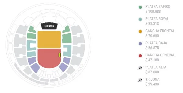 Al momento de escribir esta nota, quedan entradas para las zonas: cancha general, cancha frontal, platea zafiro, platea royal y platea baja.