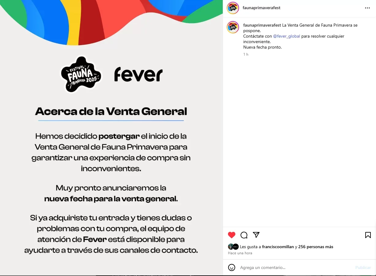 Frente a esta situación, y con el objetivo de asegurar una mejor experiencia, Fauna Primavera decidió posponer el inicio de la venta general.